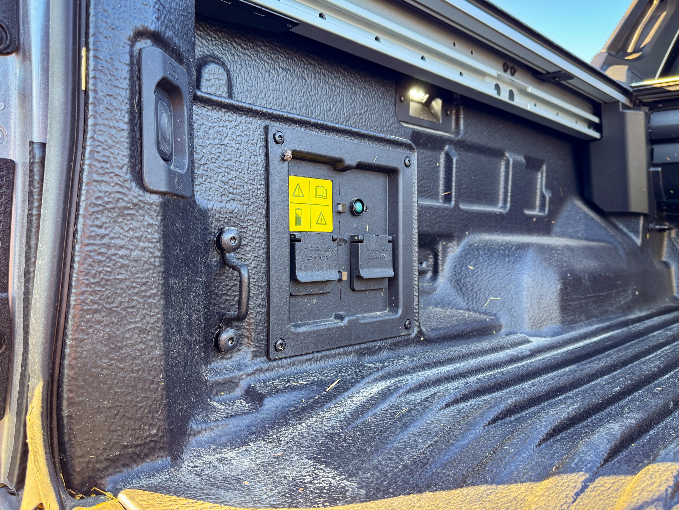 A plató hátsó részén elhelyezett két dugaszoló aljzat valódi mobil áramforrássá teszi a Ranger-t. Ez a rendszer 10 Amperes biztosítására lett tervezve, ami azt jelenti, hogy akár 2300 W-os elektromos berendezéseket is üzemeltethetünk róla! Felejtsük el a különálló aggregátorokat a munkahelyen vagy a kempingezéskor – a Ranger nagyfeszültségű akkumulátorából csendesen és hatékonyan kaphat áramot a fűrész, a kompresszor vagy éppen a kávéfőző. Ez a funkció hatalmas előny a terepen vagy akár áramforrás nélküli építkezéseken dolgozók számára.