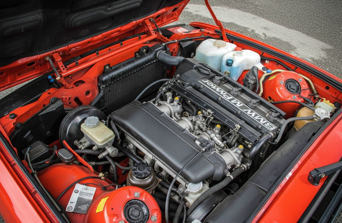 Az M3 szívét a legendás S14 kódjelű, négyhengeres motor adta. A BMW mérnökei a hathengeres M1 és M5 motorok technológiáját ötvözték egy kompakt, nagy fordulatszámú egységben. A 2.3 literes, 16 szelepes motor az utcai változatban katalizátor nélkül 200 lóerőt (147 kW) teljesített, ami a mindössze 1200 kg-os önsúlyhoz képest kiemelkedő dinamikát biztosított.