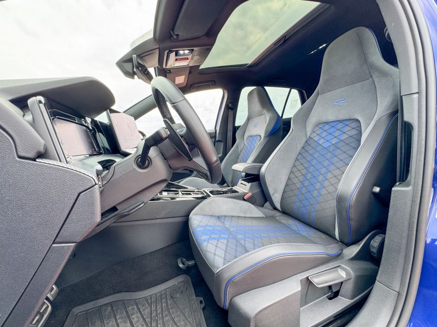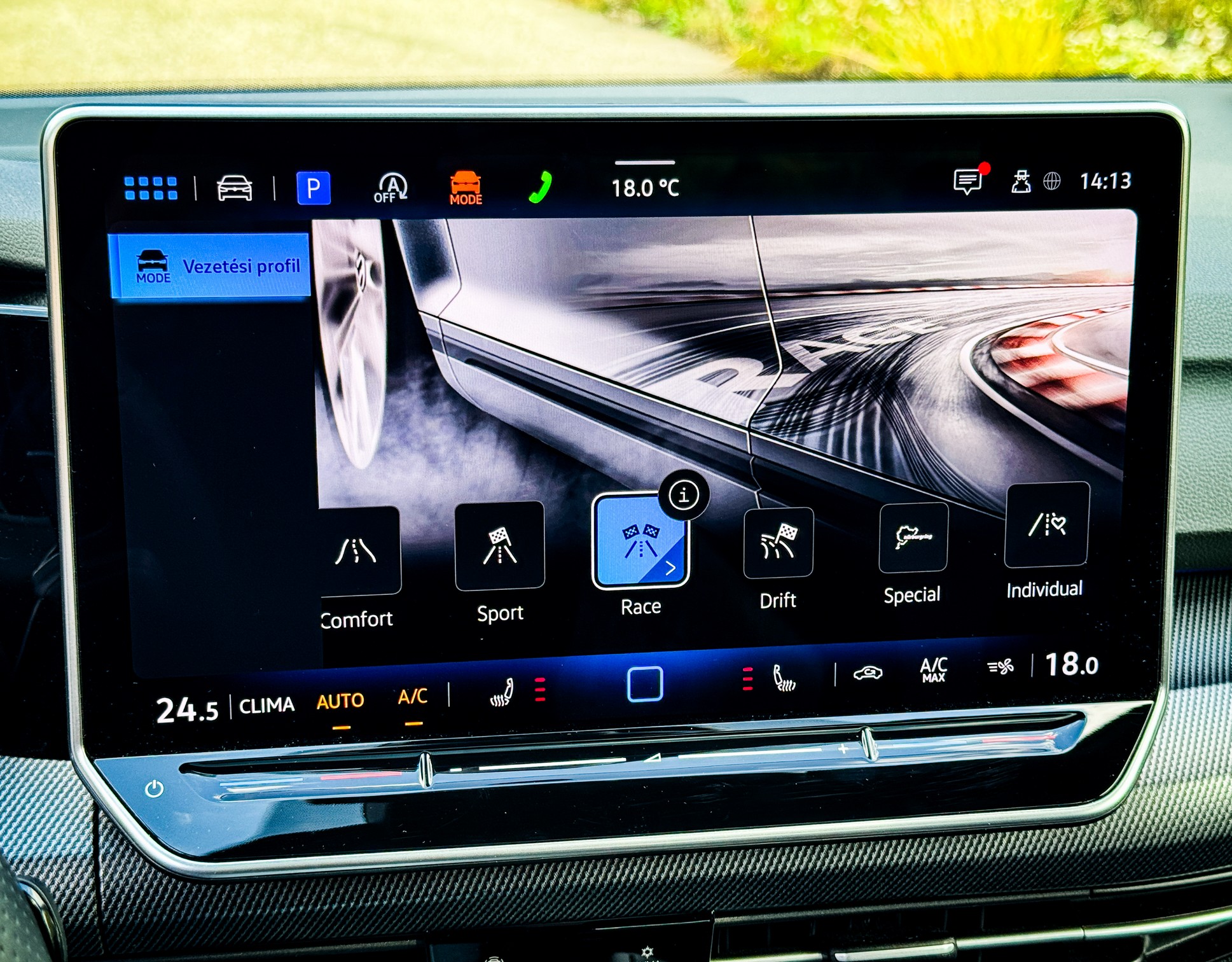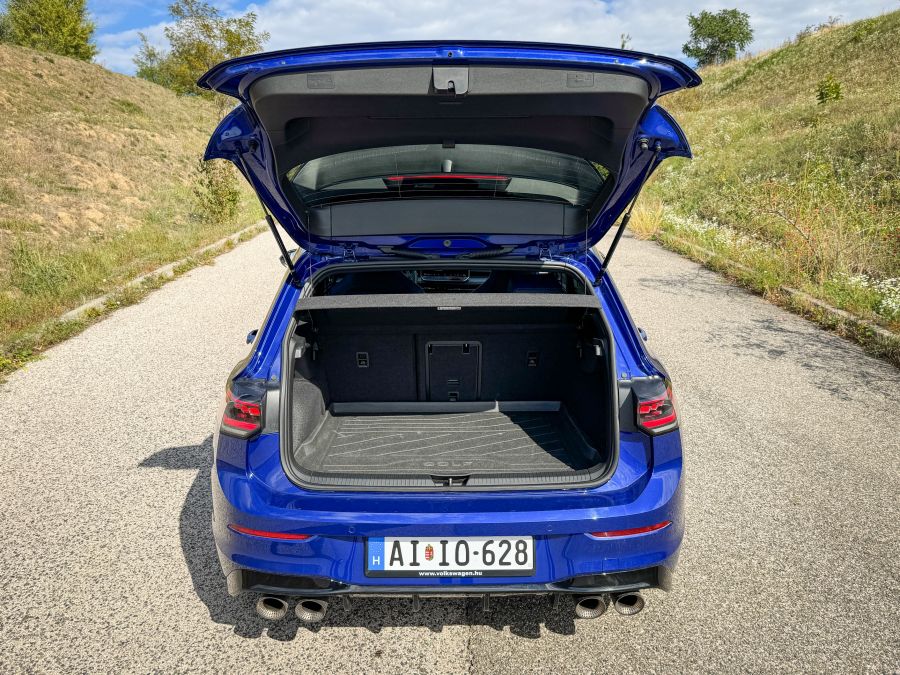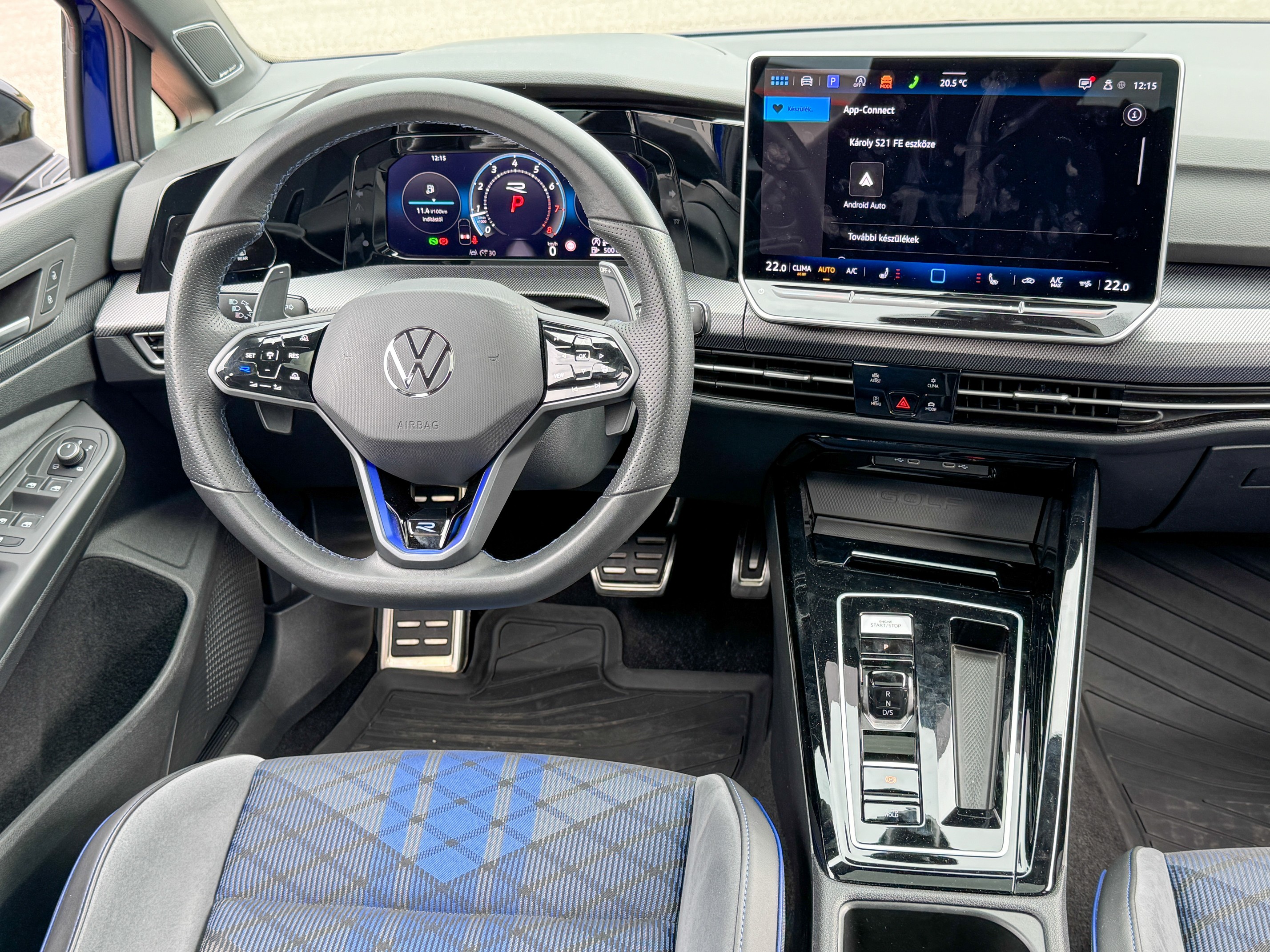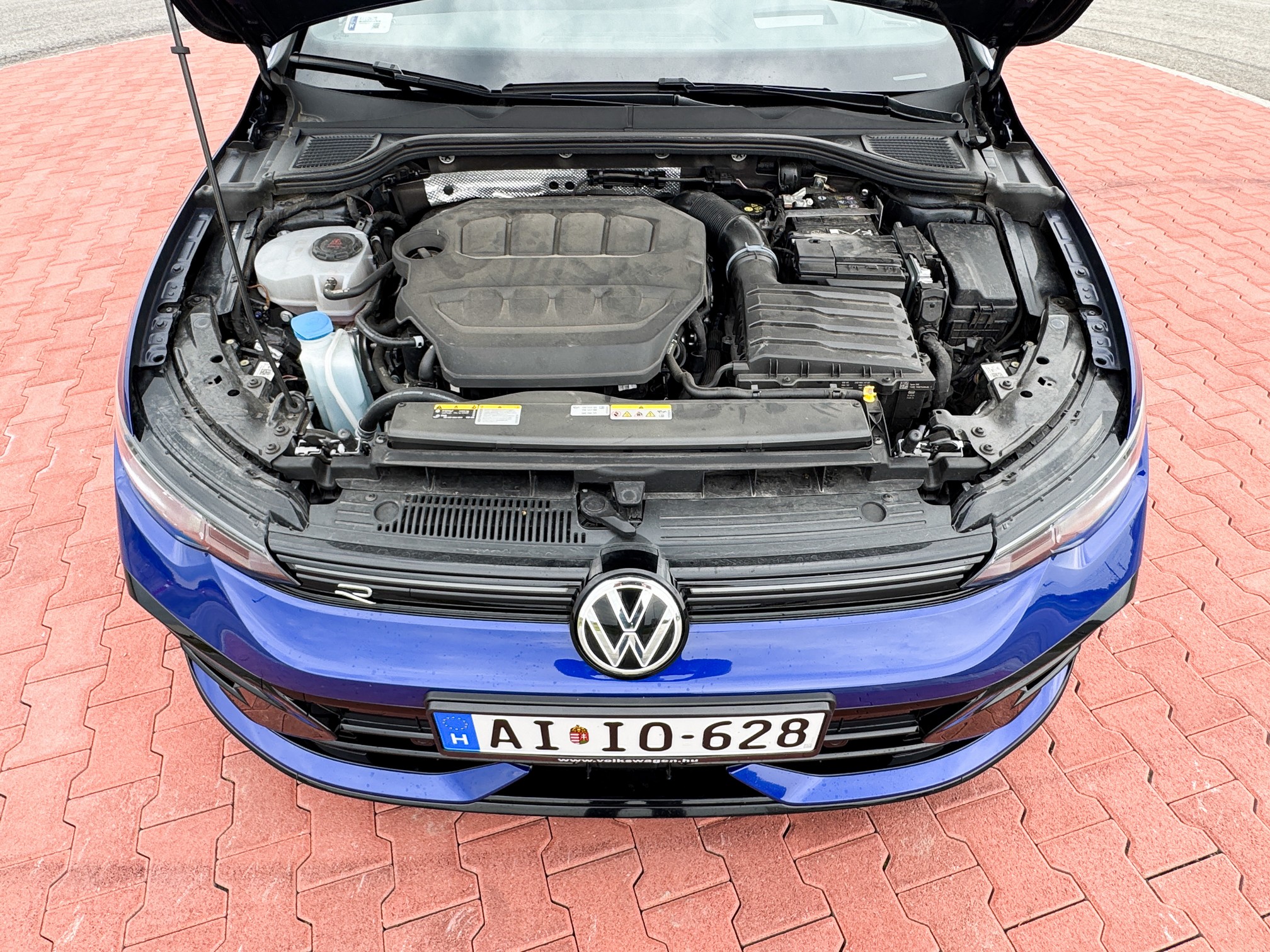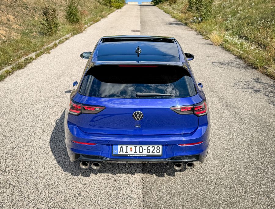 Végül, de nem utolsósorban, a belső kialakítás is tökéletesen tükrözi a modell sportos jellegét. Az egyedi kék R-es logóval díszített sportülések, a perforált bőr kormány, a szénszálas betétek és a kék ambient világítás egyaránt igazi verseny szellemet idéznek. Az R-specifikus digitális műszerfal és a központi érintőképernyő intuitív és modern kezelhetőséget biztosítanak. A korábbi Volkswagen konszern infotainment rendszereit ért kritikák mára a múlté: a tesztünk során minden óramű pontossággal működött és reagált, így a vezetésre koncentrálhatunk anélkül, hogy a technológia hátráltatna minket.