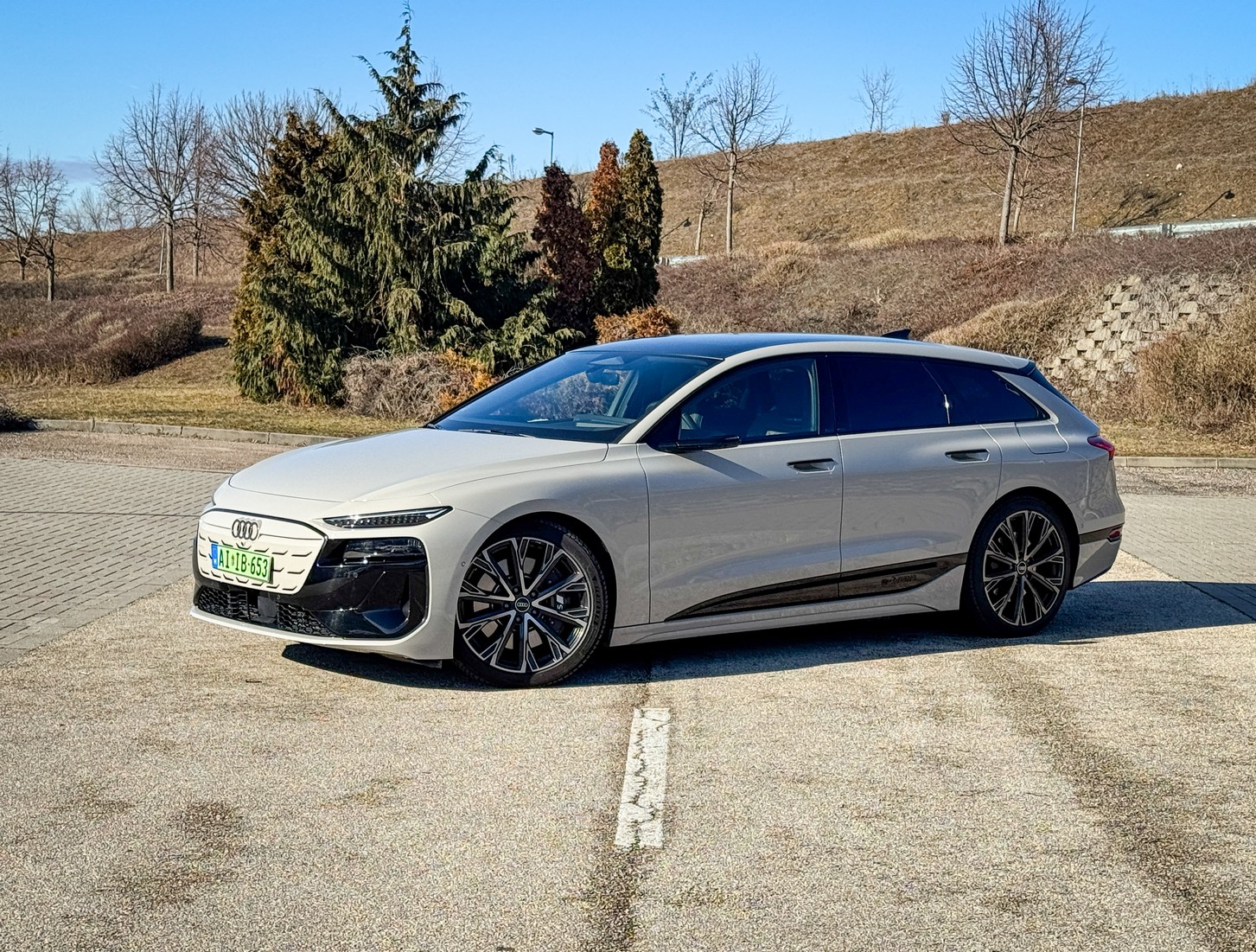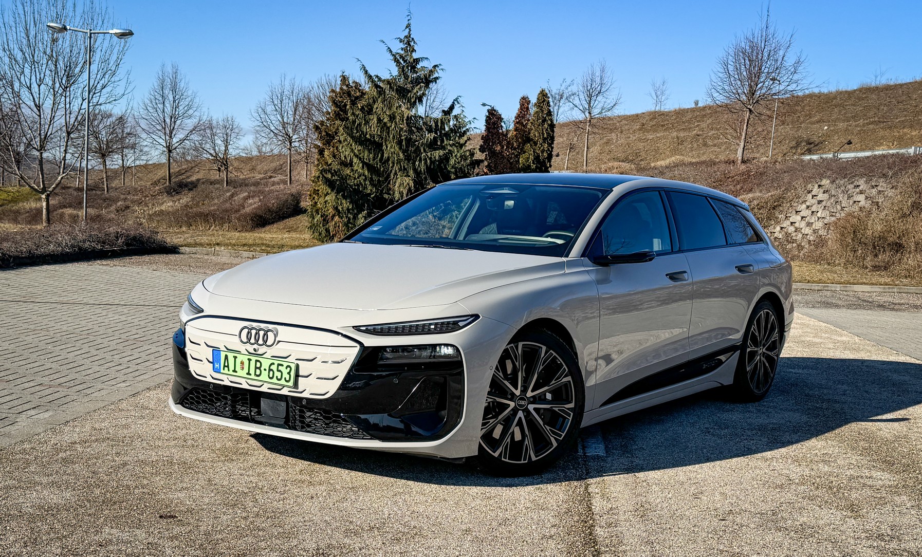 A legfontosabb momentum, amiért már az első métereken hálás voltam: ez az autó egy Avant. Egy igazi, vérbeli kombi. A jelenlegi piacon, ahol minden második újdonság egy magas építésű, olykor bumfordi SUV, felüdülés látni ezt a lapos, nyúlánk és elképesztően elegáns sziluettet. A tesztautónk világosbarna metál fényezése pedig telitalálat. Nem hivalkodó, mégis rendkívül különleges; van benne egyfajta „felnőtt” elegancia, ami kiemeli az autó futurisztikus vonalait.
