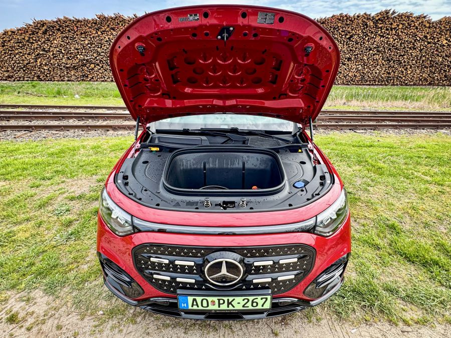A GLB maradt, amiért szerettük: egy rendkívül praktikus doboz. Továbbra is elérhető hétüléses kivitelben, a második sorban pedig javítottak az üléspozíción és a lábtéren. Az elektromos hajtás hozadéka a 127 literes első csomagtartó (frunk), ami tökéletes a kábeleknek vagy kisebb táskáknak, miközben a hátsó csomagtér az ötszemélyes változatban akár 1715 literig bővíthető.
