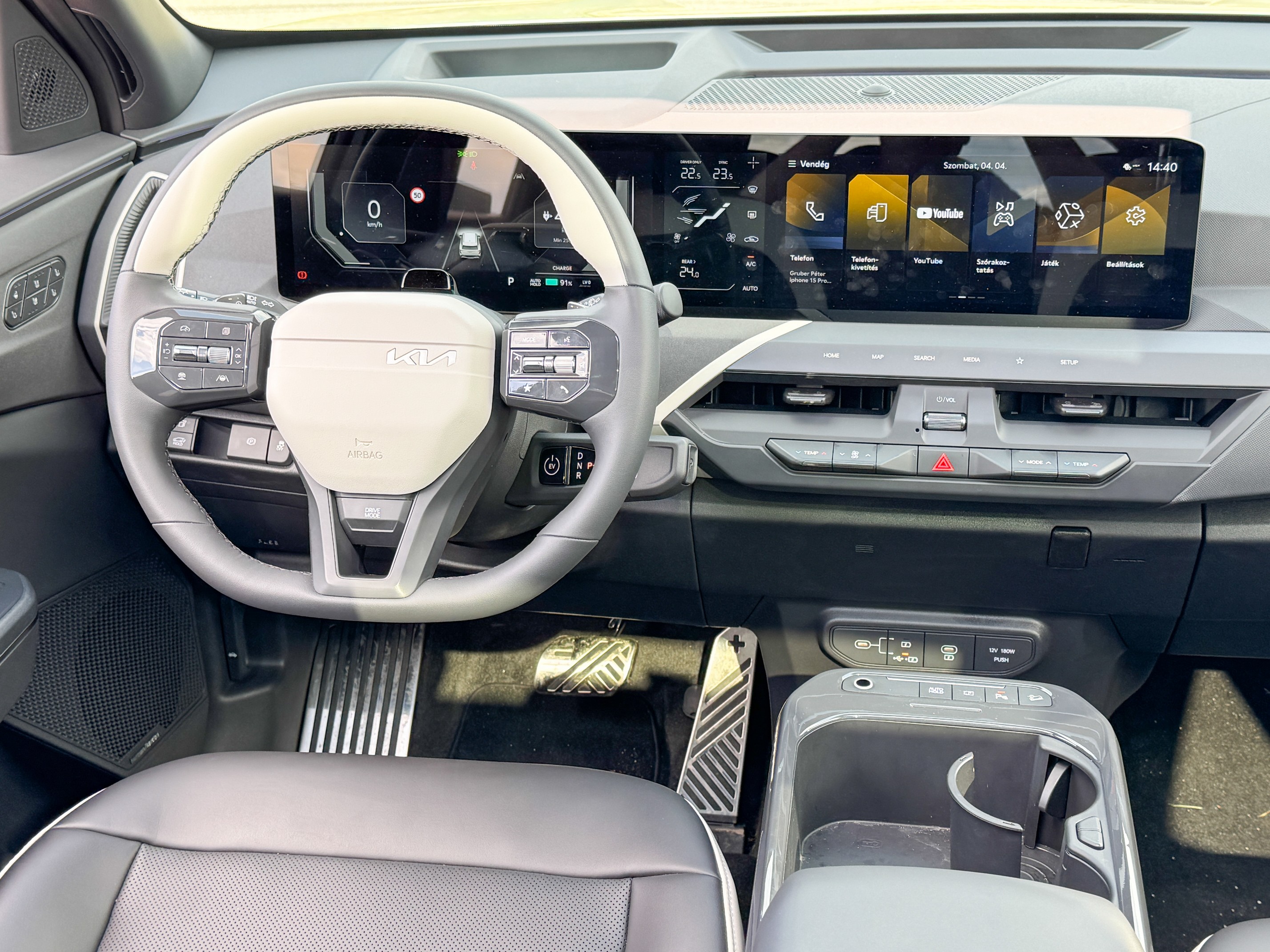 A Kia prémium szárnyalásához kellett a német konkurencia megtorpanása is. Míg a német prémium trió (BMW, Mercedes, Audi) a szigorodó szabályozások és a technológiai váltás költségei miatt sokszor kénytelen volt egyszerűsíteni a belterekben, a Kia mérnökei – a rendelkezésükre álló hatalmas büdzséből – valami olyat alkottak, ami minőségben felveszi a versenyt a stuttgarti vagy müncheni színvonallal. Ma már a németeknél is alapértelmezett a szintetikus vagy vegán bőr, így a különbség már nem az anyag eredetében, hanem a megmunkálás zsenialitásában rejlik, eltűnt az a tapintható előny, ami évtizedekig megkülönböztette őket.. Az EV5 egyértelműen a prémium szegmensre céloz: a formaterv robusztus, az anyaghasználat pedig kiváló.