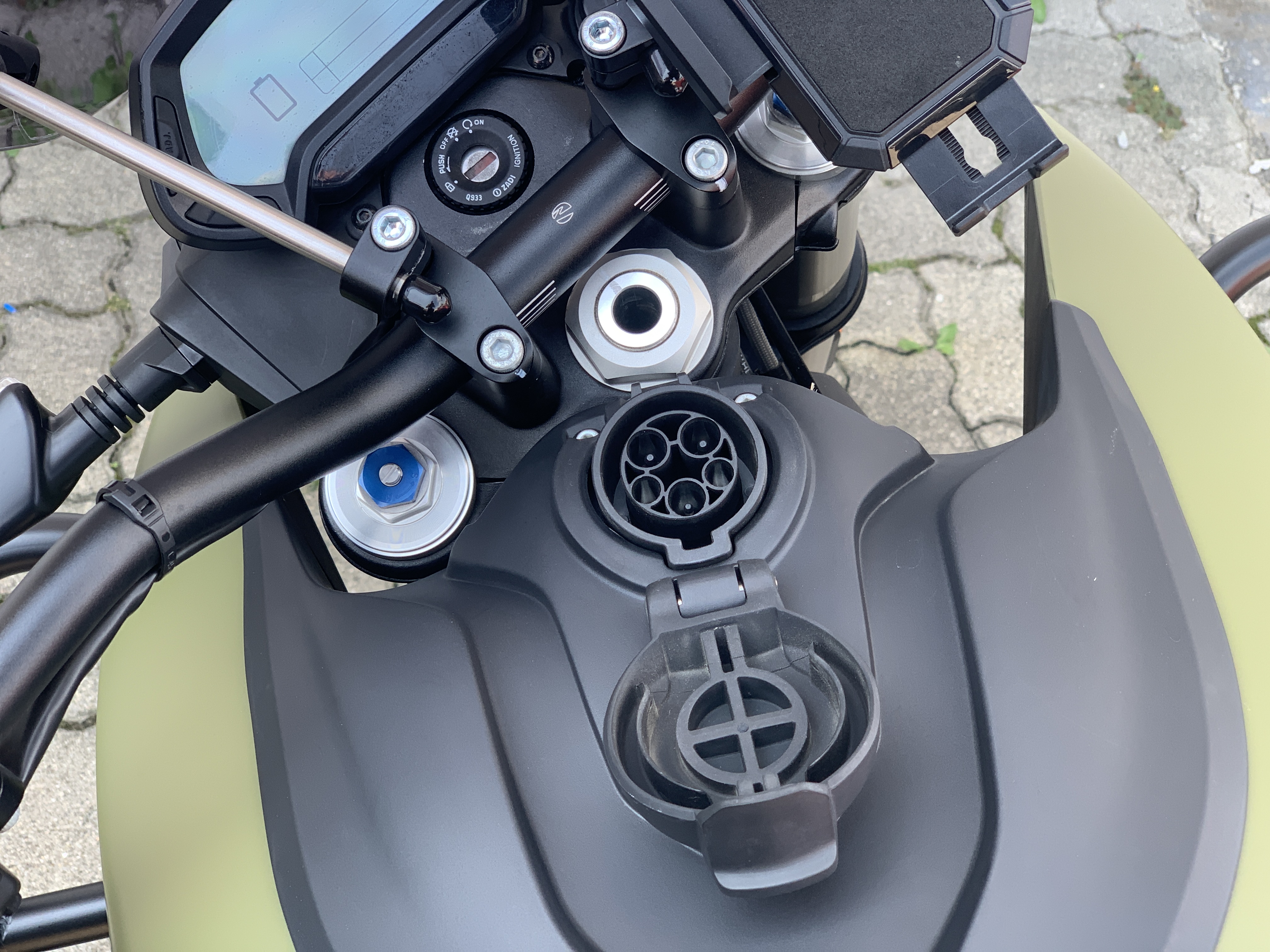 A töltéshez kapunk egy Type1 csatlakozót, aminek a segítségével cca. 2-2,5 óra alatt tölthető fel nulláról 100%-ra az akkumulátor, továbbá egy PC adapter kábelt, ugyanis ezzel azonos végződésű csatlakozó segítségével lehet a hagyományos fali aljzatba dugni a Zero DS-t. 220V-ról nagyságrendileg 10 óra alatt tölthető fel teljesen. A tanksapka helyét elfoglaló Type csatlakozó egyébként opciós lehetőség. Alaphelyzetben itt tárólórekesz található, amelyet lecserélhetünk a gyorsabb töltésre vagy akár a "tank" helyére újabb akkupack is kerülhet, amely 3,6kW feszültséggel további hatótávolságot adhat nekük.