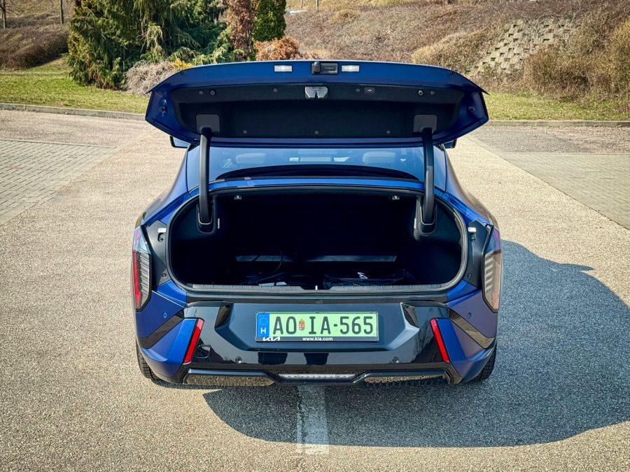 Azonban, ha őszinte akarok lenni, egy dolog szúrja a szememet: a nyílás. A csomagtér ugyanis hagyományos, szedános módon nyílik. Nagy kár, hogy a tervezők kihagyták ezt a ziccert, és nem az ablakkerettel együtt nyíló, hatalmasra táruló – kvázi liftback – ajtót választották. A praktikum így egy picit csorbát szenved, hiszen a magasabb tárgyak behelyezése a szűkebb nyílás miatt nehézkesebb. Ez legyen a legnagyobb bűne egy ilyen formabontó, technológiai csodaautónak!