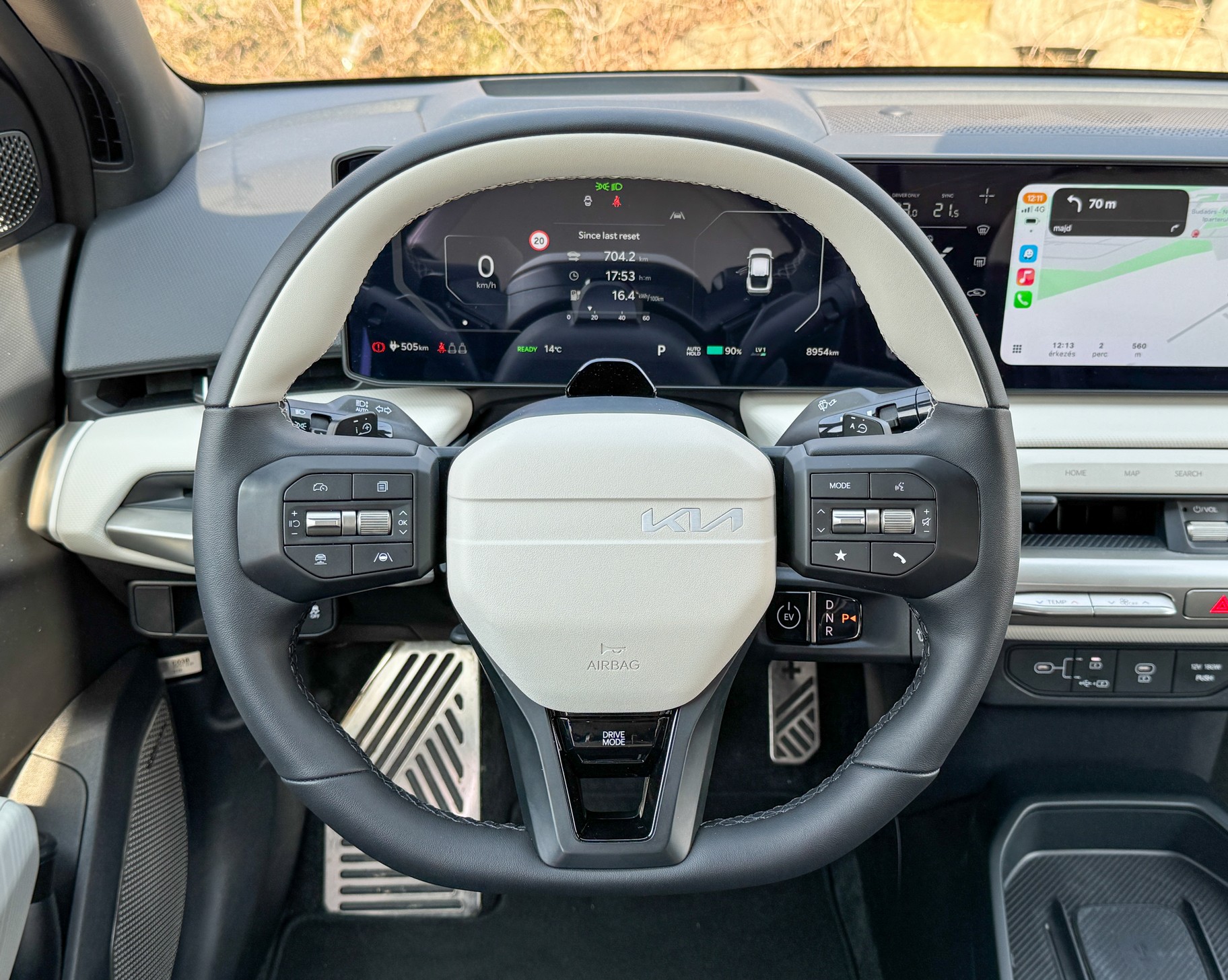 Ami azonban igazán meglepett, az a vezetési élmény. Az EV4 kifejezetten sportos karakter, meglepően agilis és fordulékony, ami városon belül igazi áldás. A súlypont az akkumulátorok miatt mélyen van, így az útfekvése példásan stabil: kanyarokban úgy falja az íveket, mintha sínen húznák. A kormányzás közvetlen, visszajelzései pedig – egy elektromos autóhoz mérten – meglepően informatívak.