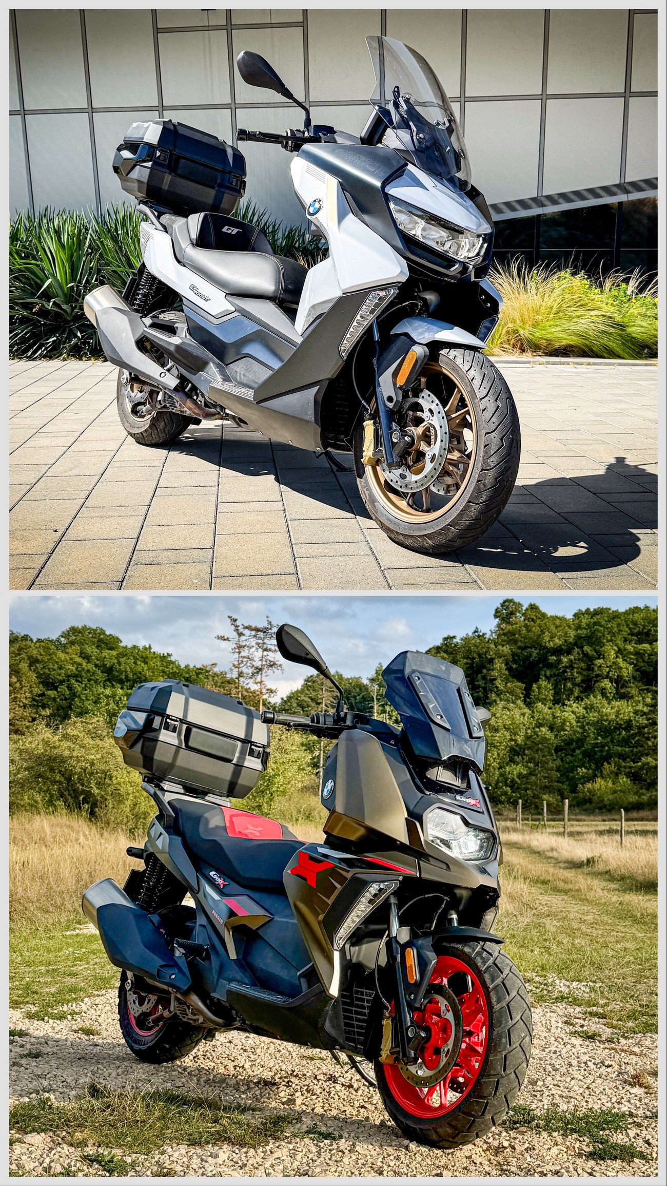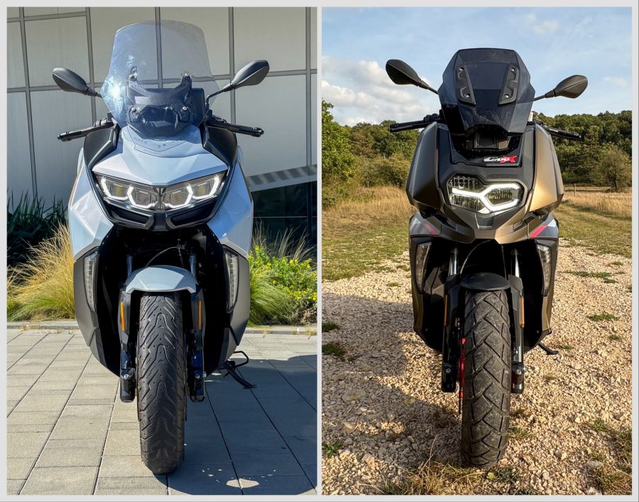Ezzel szemben a BMW C400X Rugged megjelenése a BMW GS kalandmotorok stílusjegyeit idézi. A matt Kalamata metálfény, a robusztusabb kialakítású burkolatok és a terepmintás abroncsok is egyértelműen a kalandokra utalnak. A kisebb, sötétített szélvédő és az aktívabb, előre dőlt ülőpozíció jobban illik a városi forgalomhoz és a földutakhoz. Míg a C400GT a kényelmet helyezi előtérbe, a C400X Rugged a dinamikus, "mindenre kész" attitűdöt képviseli, amely nem riad vissza a járatlan utaktól sem.